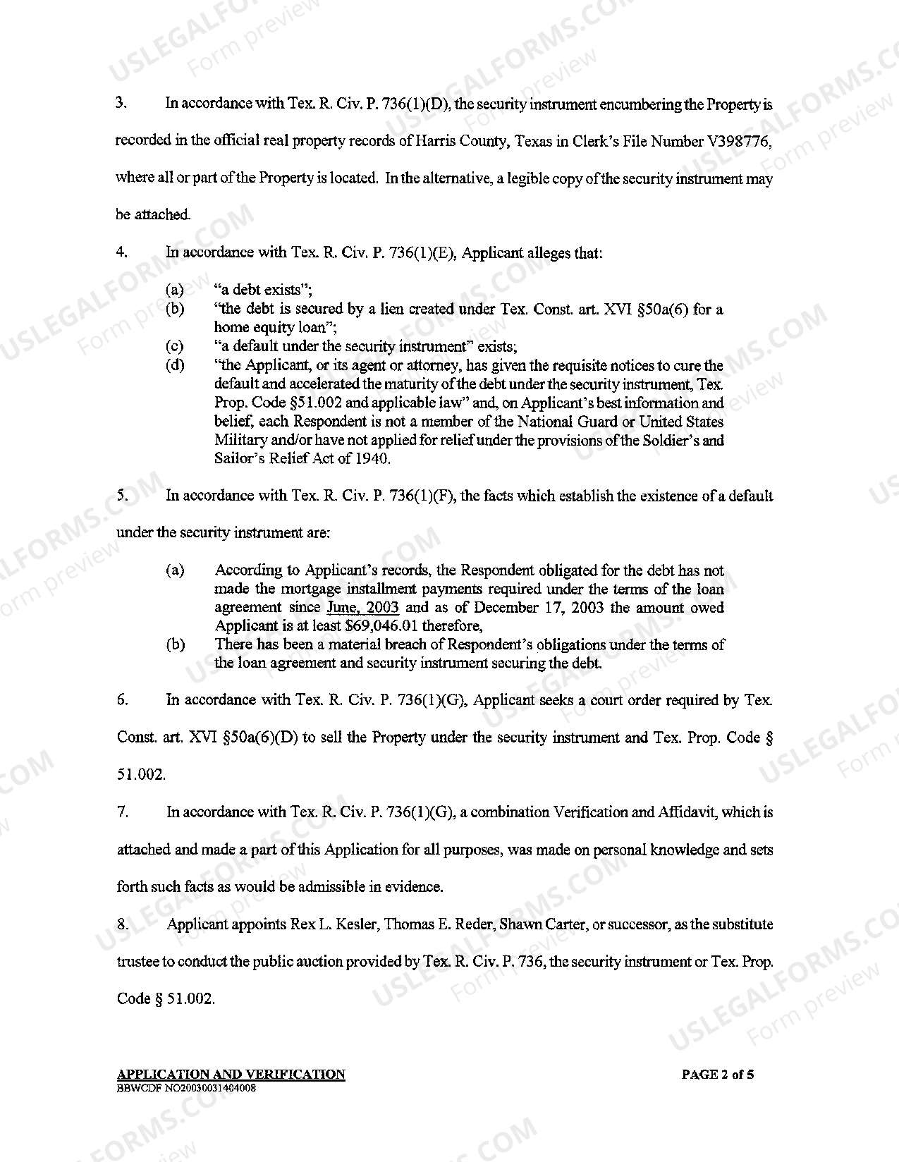 Texas Home Equity Foreclosure Application Us Legal Forms